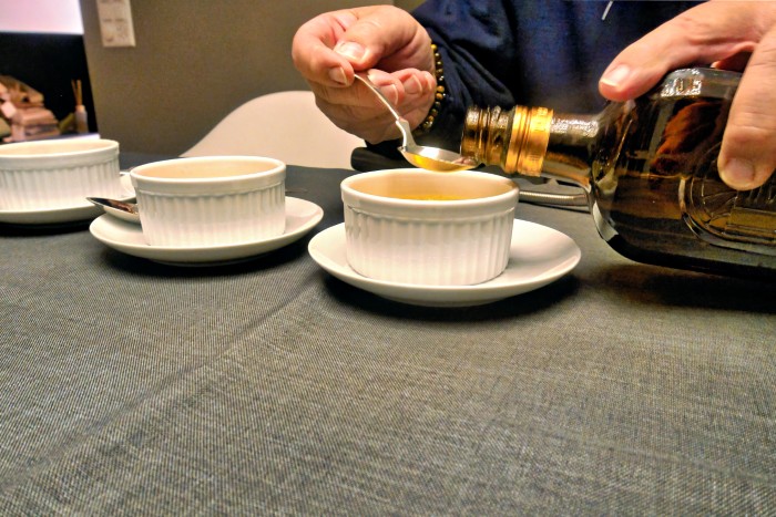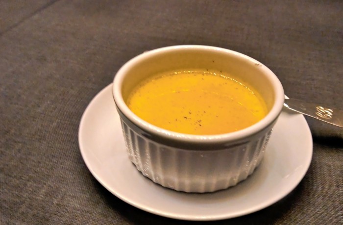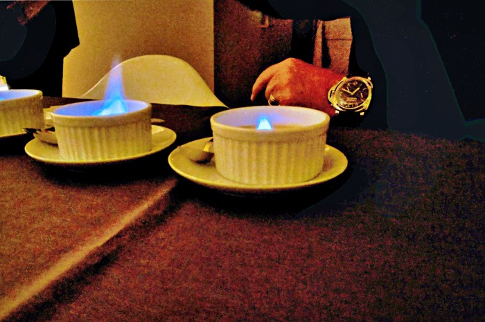 Crème Brûlée flambiert mit Cointreau und Café mit Orangecello