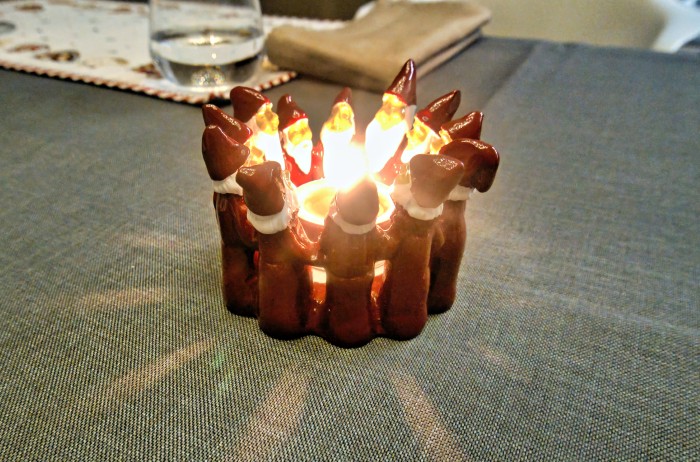 die Set mit einer Schoggi-Weihnachtskugel dekoriert