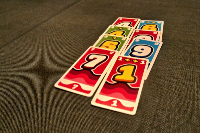 Dann legt man zwei Karten ab, diese müssen immer höher sein als die Vorgabe.