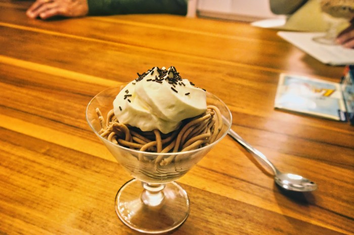 Vermicelles mit Rahm und Café