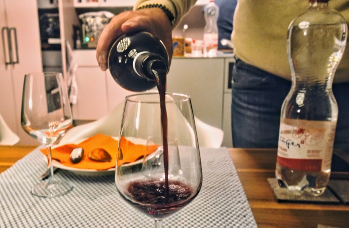 René serviert den "Nero D'avola" aus Sizilien