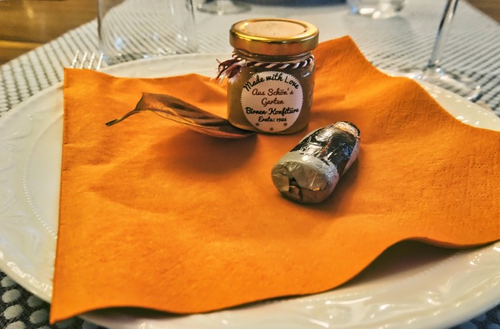 als "Paltis" gab es für jeden Gast die hausgemachte Birnenconfi aus Schöni's Garten